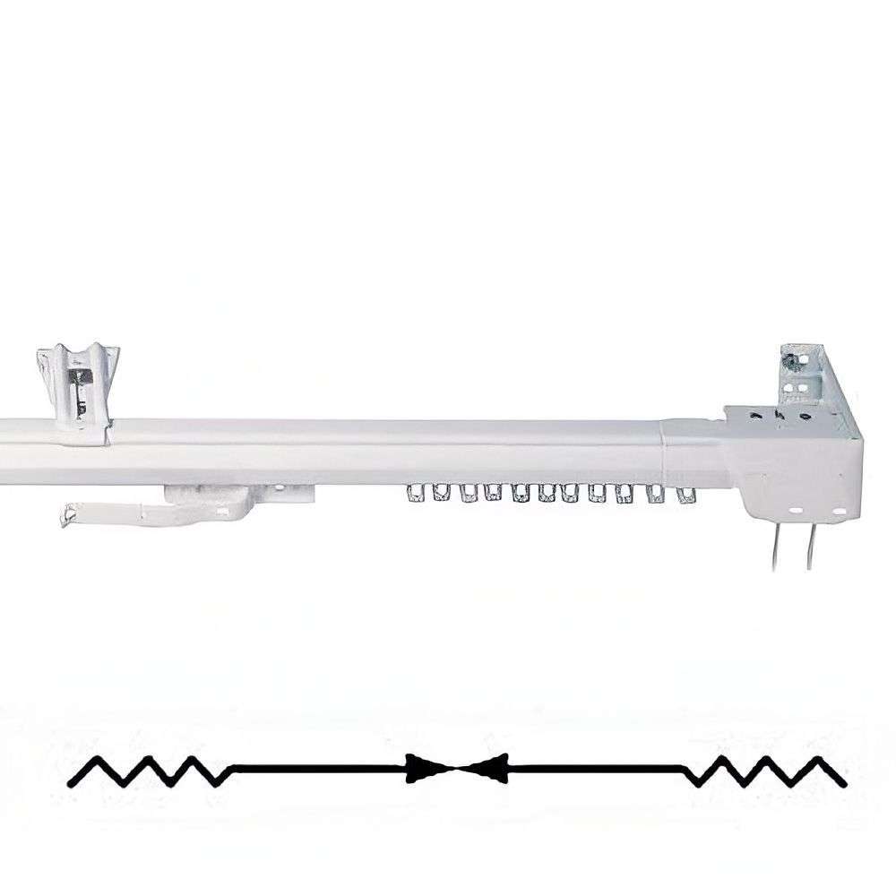 Traverse Rod telescopes from 38 to 66 inches. Split draw with right hand cord.