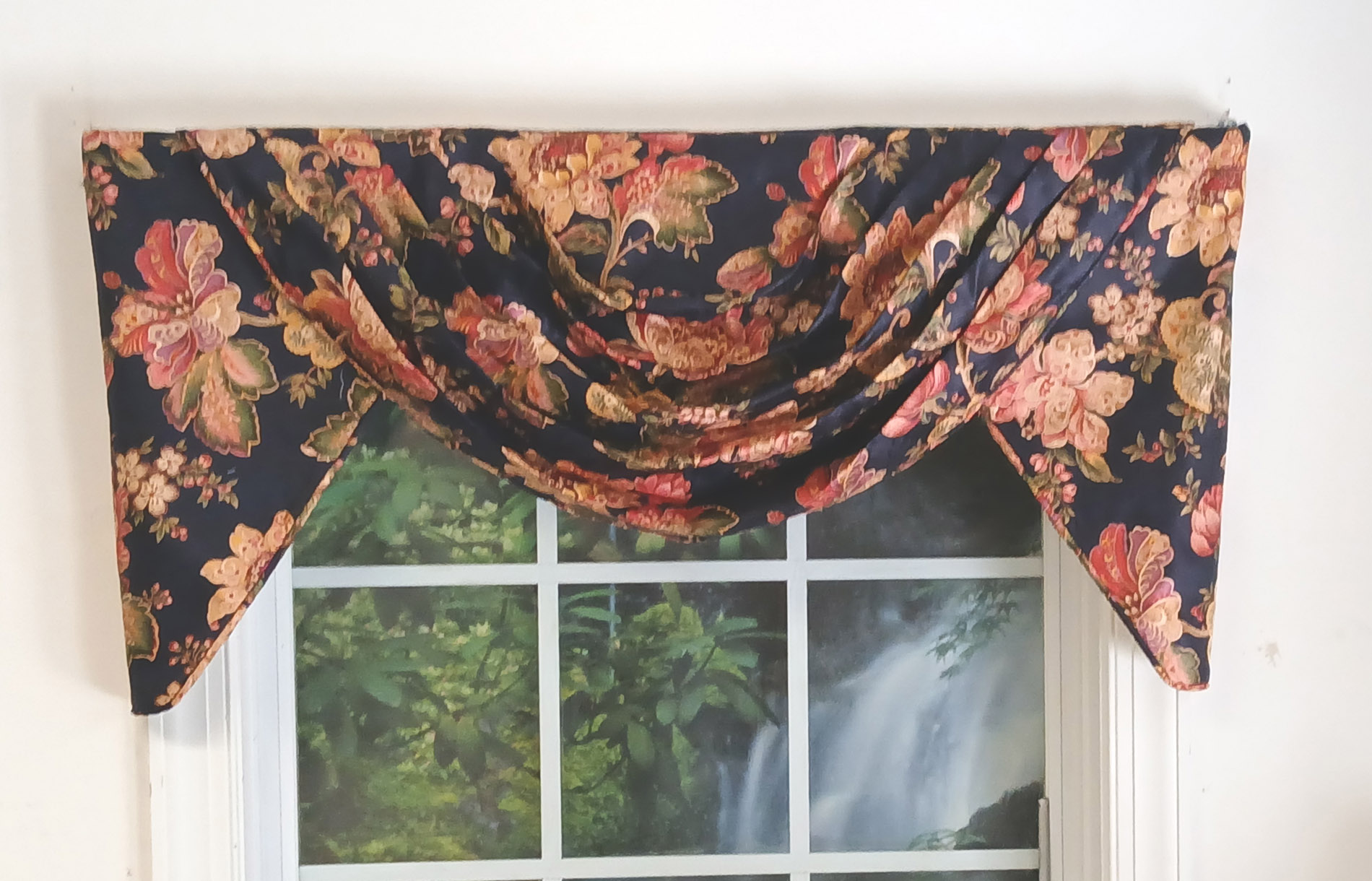 Jabots (sides) 22 x 17, Cascade (center) 38″W X 17″L